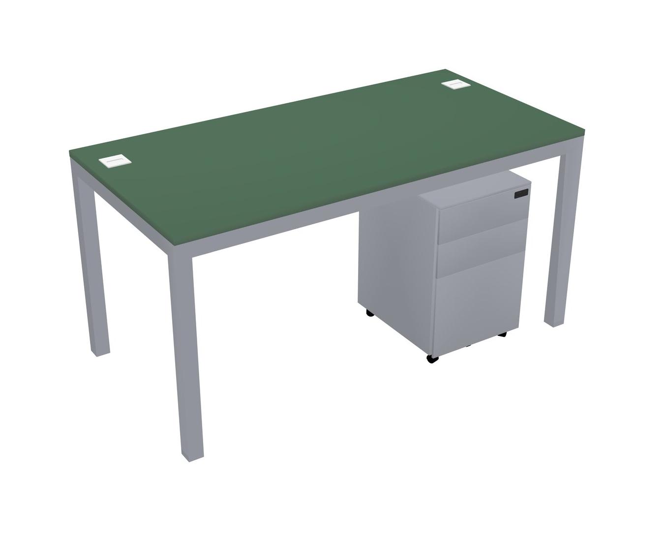 Green Rectangular Office Desk With Metal Mobile Drawers For 1 Persons