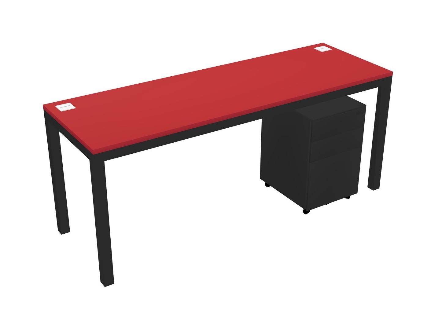 Prism Red Rectangular Office Desk With Metal Mobile Drawers For 1 Persons