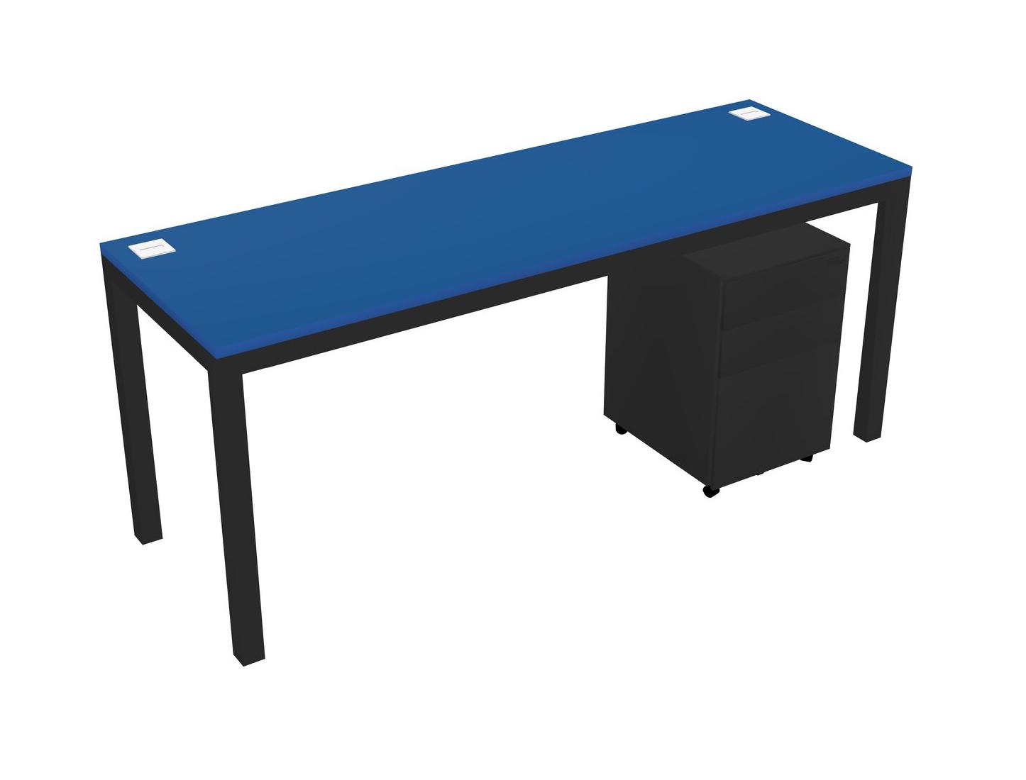 Prism Blue Rectangular Office Desk With Metal Mobile Drawers For 1 Persons