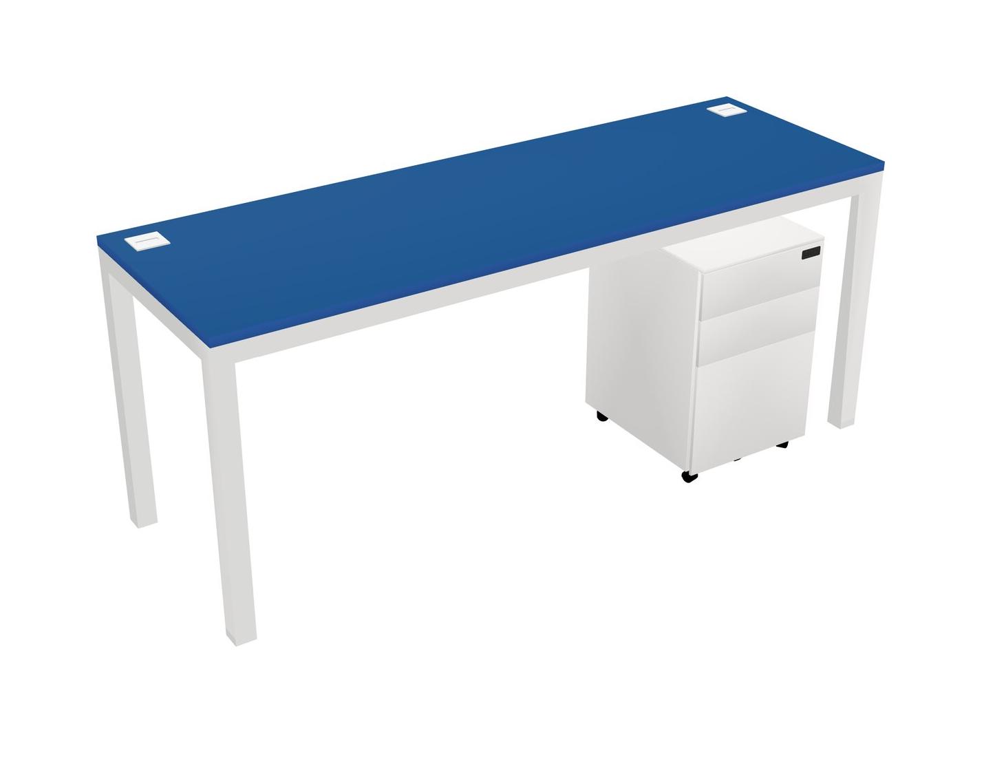 Prism Blue Rectangular Office Desk With Metal Mobile Drawers For 1 Persons