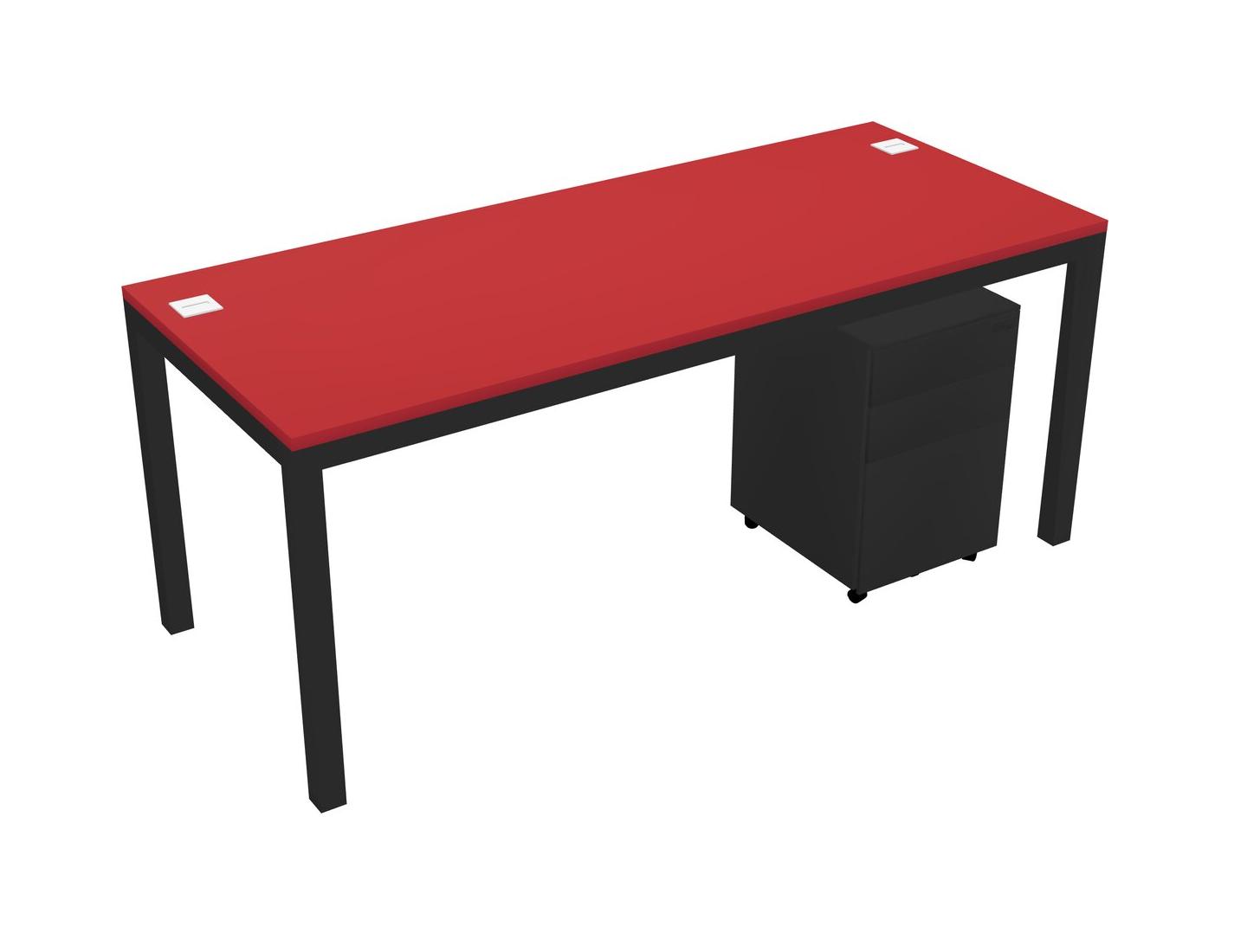 Prism Red Rectangular Office Desk With Metal Mobile Drawers For 1 Persons