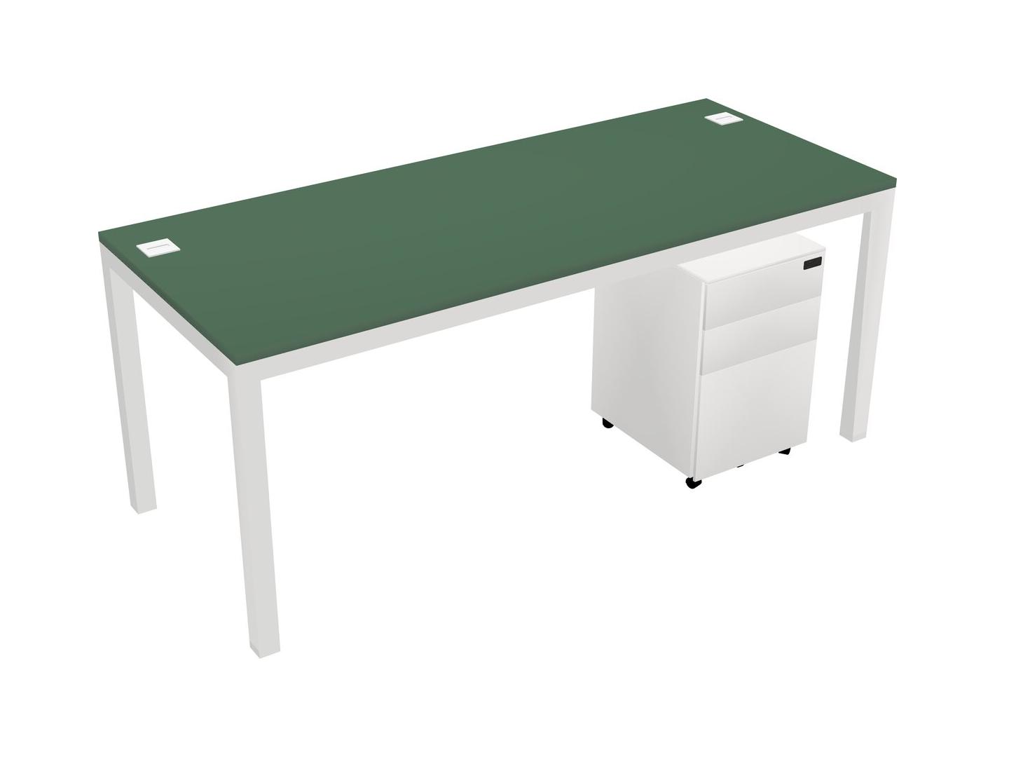 Green Rectangular Office Desk With Metal Mobile Drawers For 1 Persons