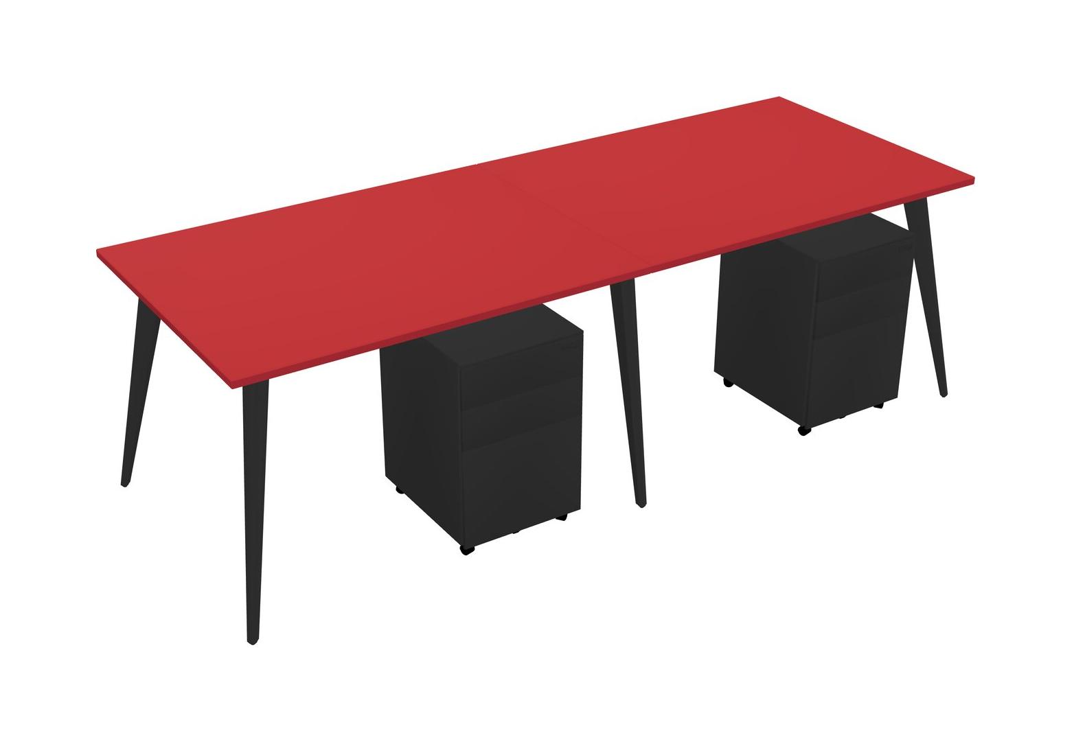 Prism Red Rectangular Office Desk With Metal Mobile Drawers