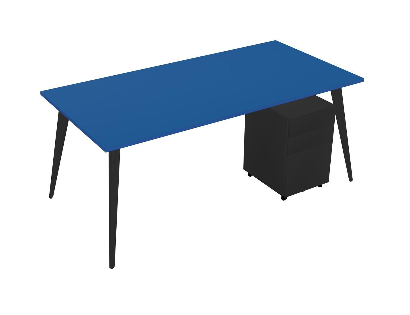 Prism Blue Rectangular Office Desk With Metal Mobile Drawers