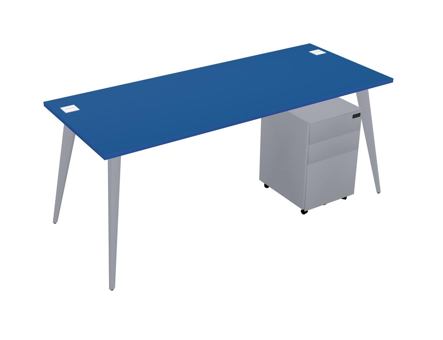 Prism Blue Rectangular Office Desk With Metal Mobile Drawers