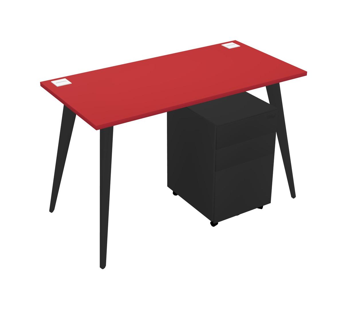 Prism Red Rectangular Office Desk With Metal Mobile Drawers