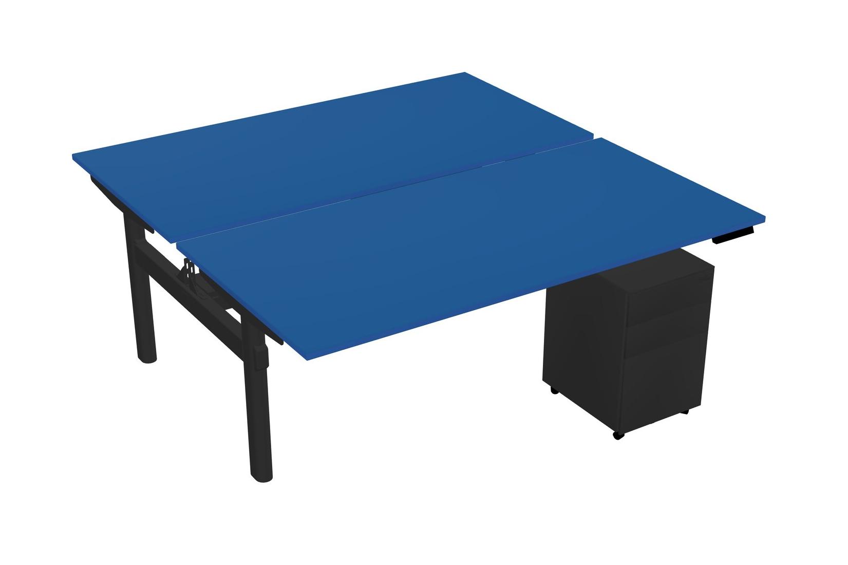 Prism Blue Shared Dual Motor Electric Height Adjustable Desk With Metal Mobile Drawers
