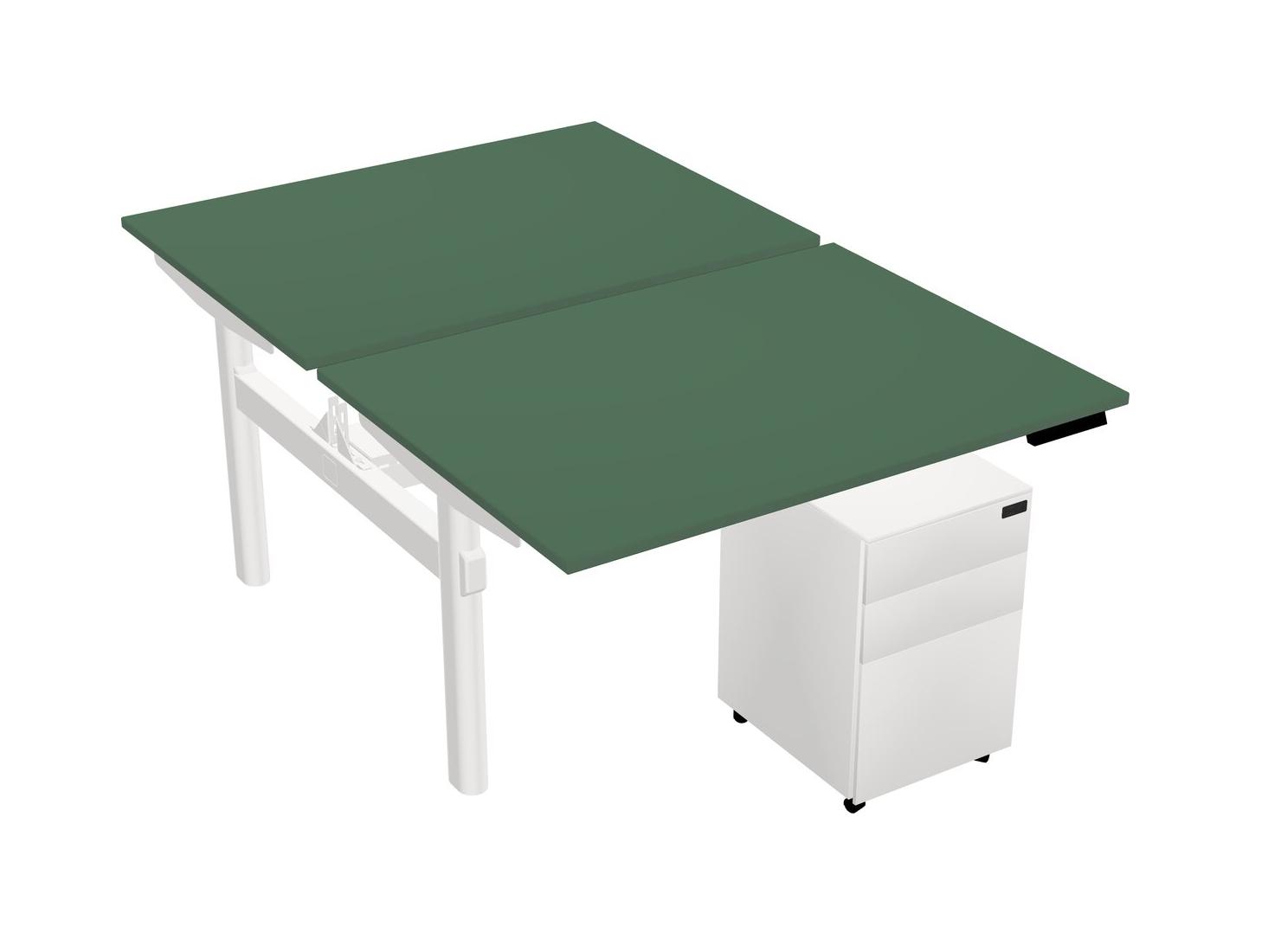 Green Shared Dual Motor Electric Height Adjustable Desk With Metal Mobile Drawers