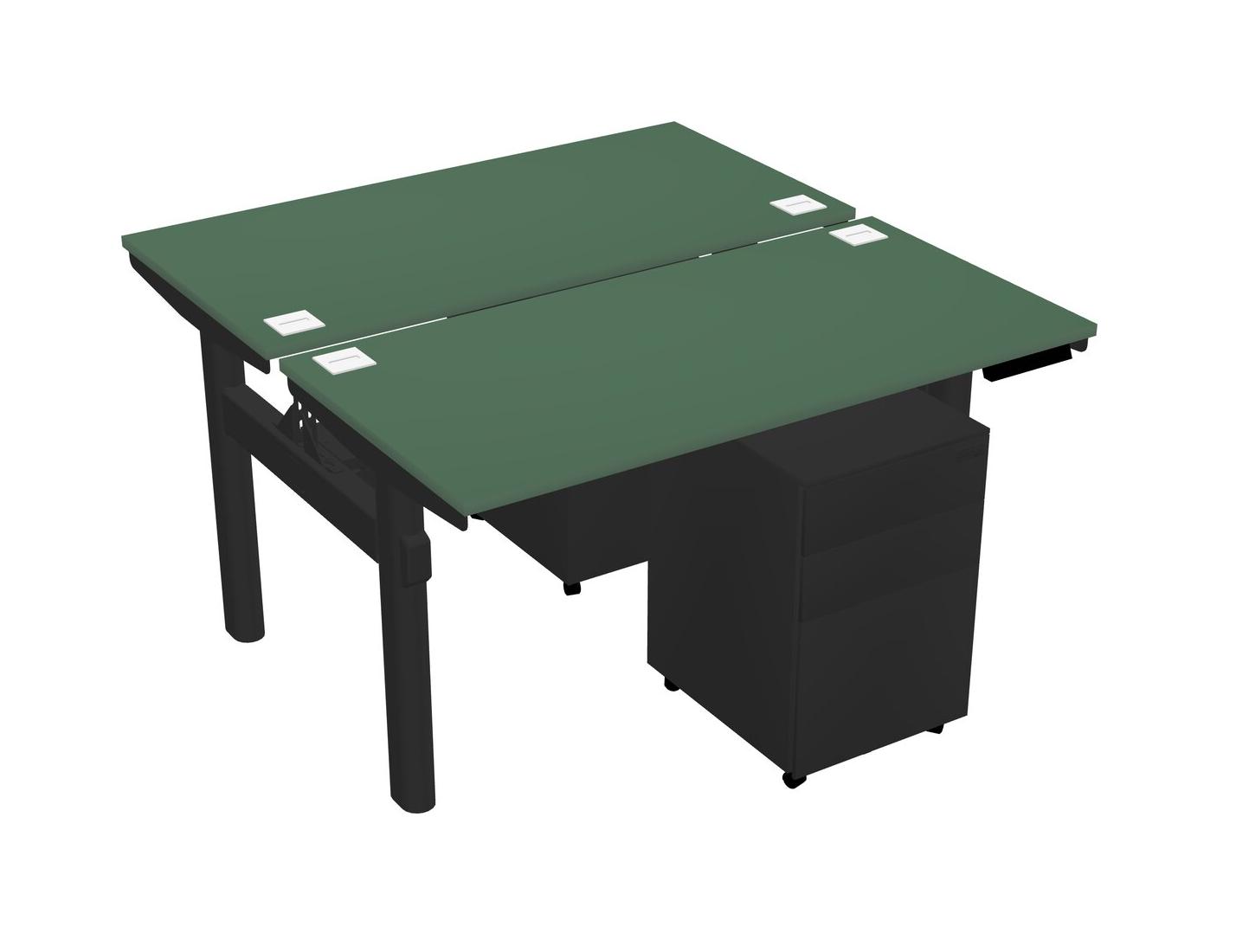 Green Shared Dual Motor Electric Height Adjustable Desk With Metal Mobile Drawers