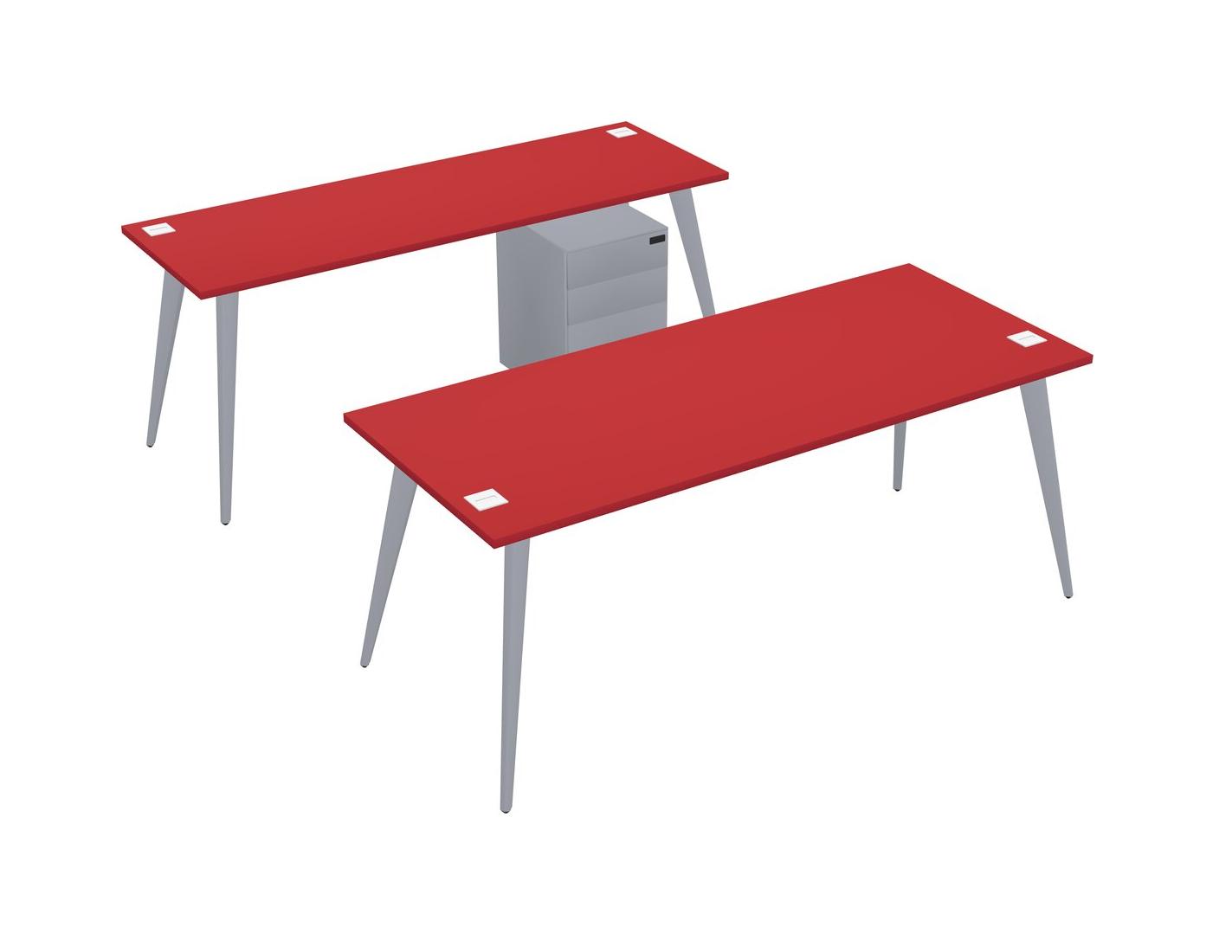Prism Red Parallel Office Desk Plus Metal Mobile Drawers