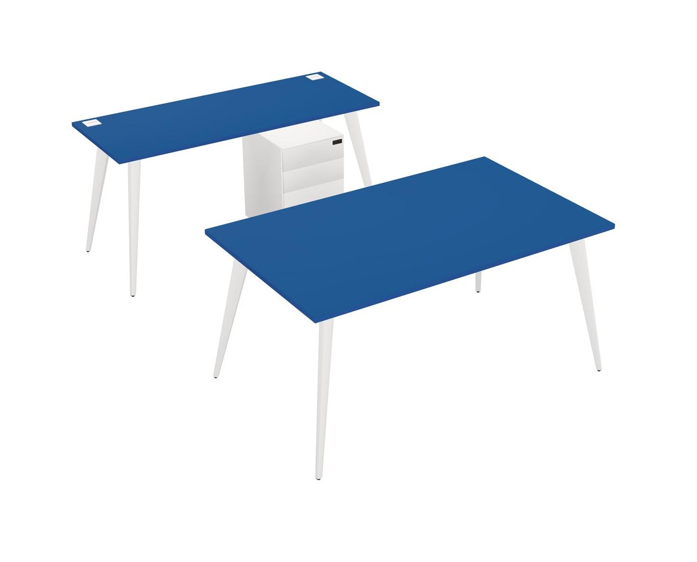 Prism Blue Parallel Office Desk Plus Metal Mobile Drawers