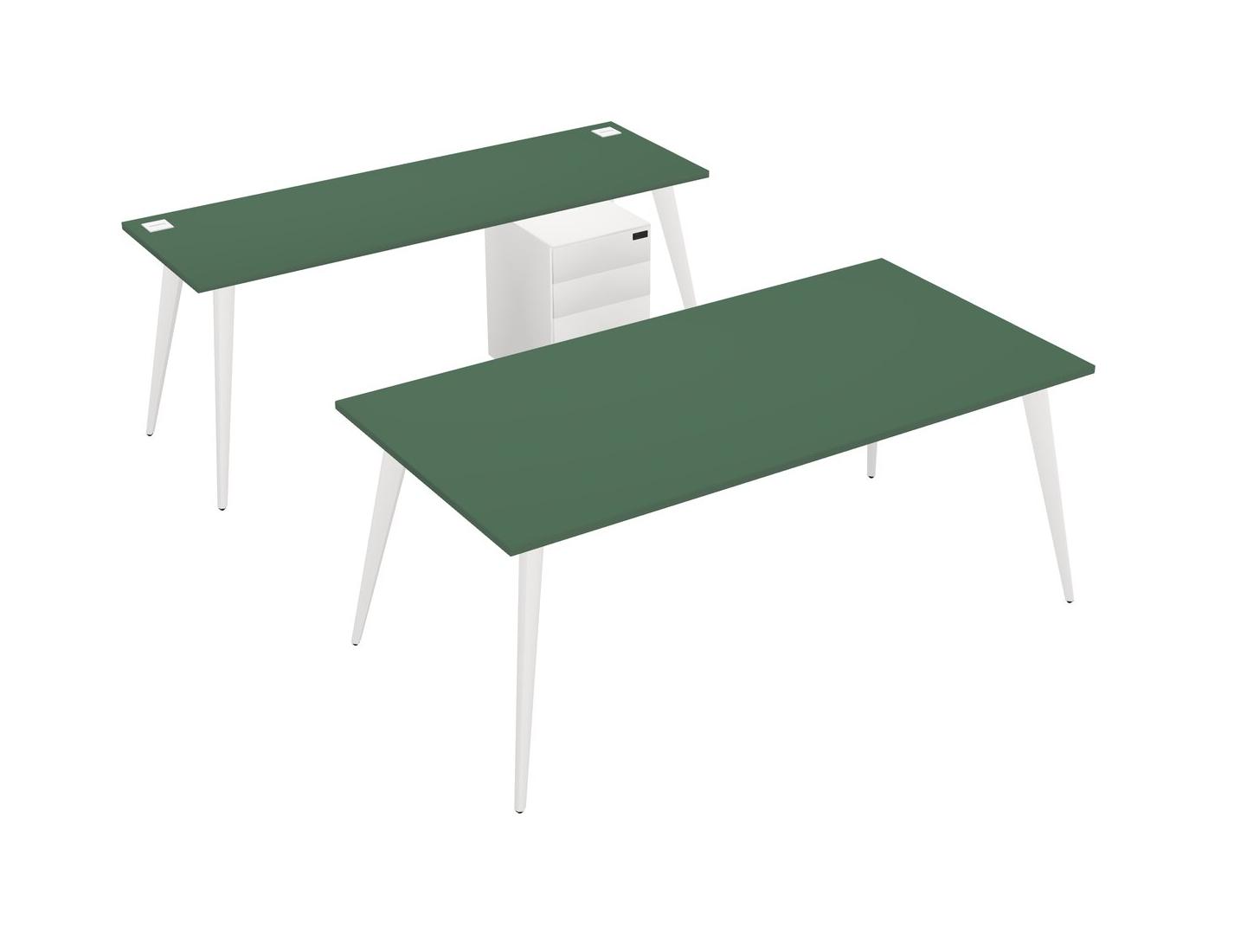 Green Parallel Office Desk Plus Metal Mobile Drawers
