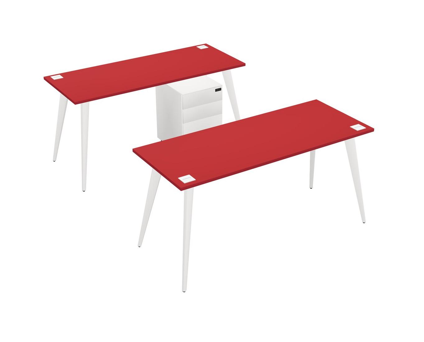 Prism Red Parallel Office Desk Plus Metal Mobile Drawers