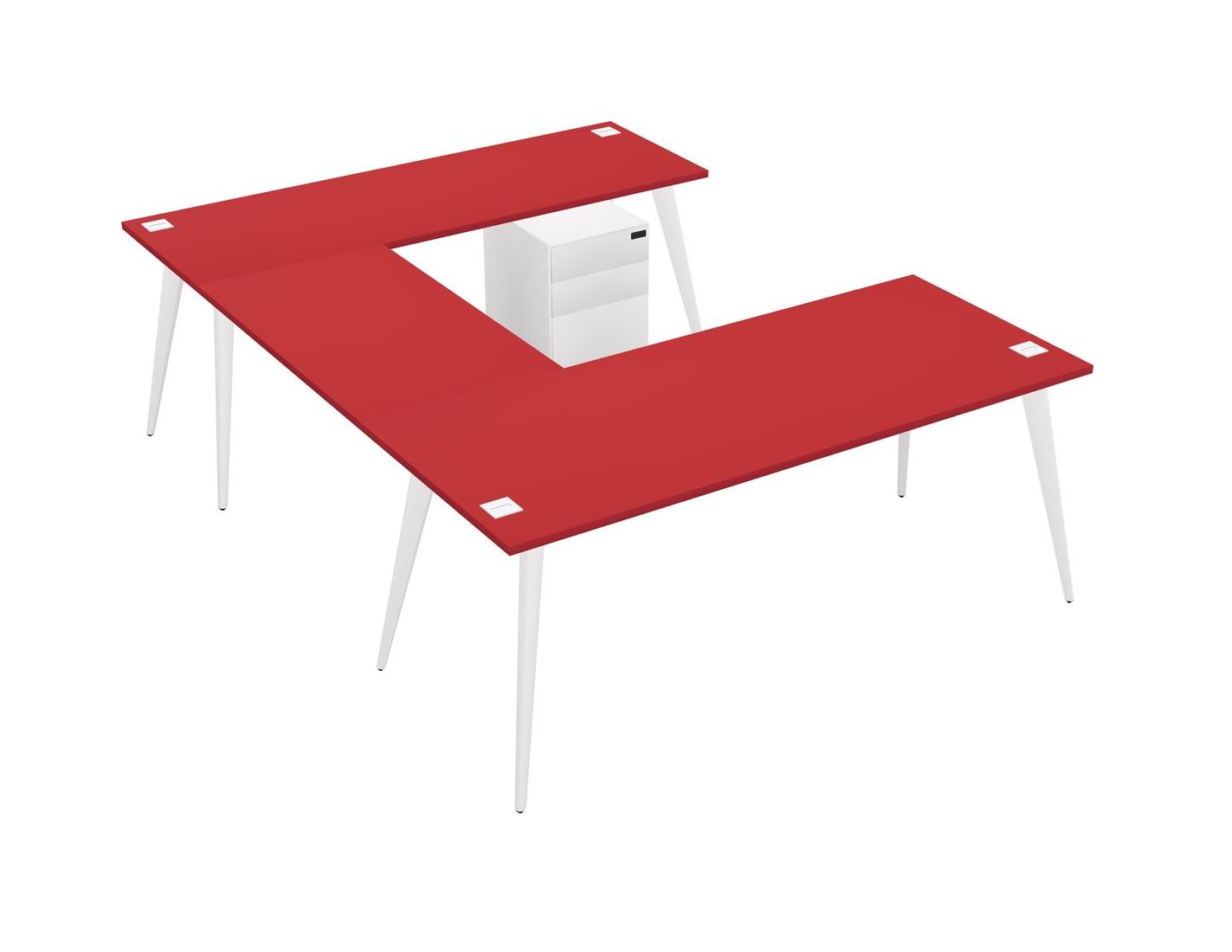 Prism Red U-shaped Office Desk Plus Metal Mobile Drawers