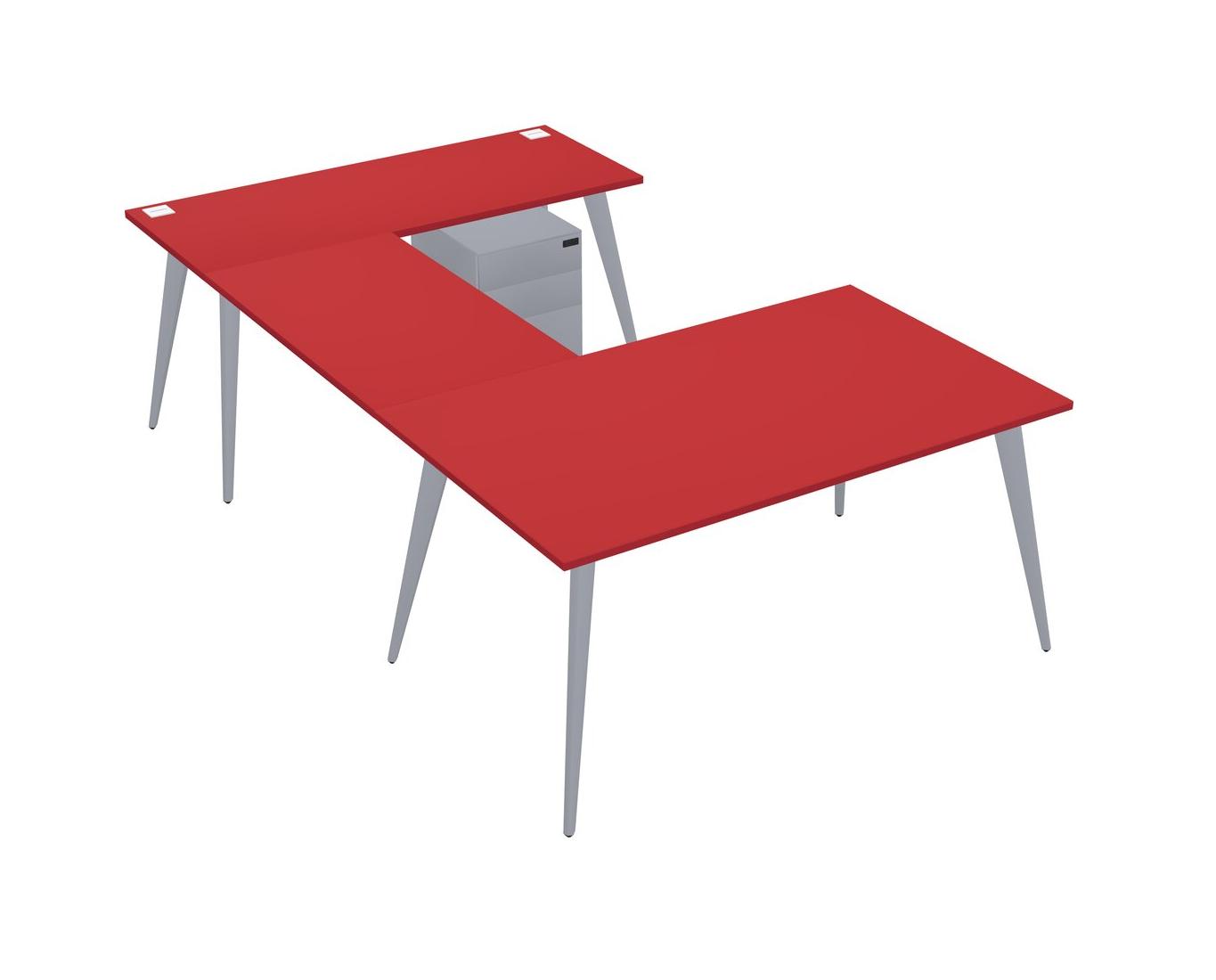 Prism Red U-shaped Office Desk Plus Metal Mobile Drawers