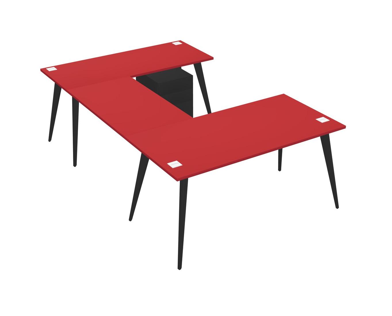 Prism Red U-shaped Office Desk Plus Metal Mobile Drawers