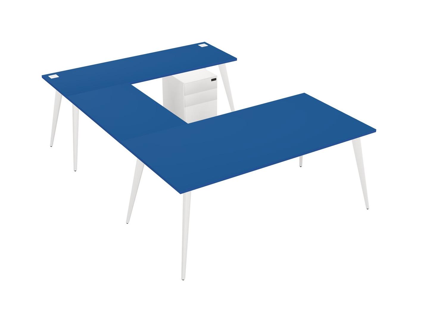 Prism Blue U-shaped Office Desk Plus Metal Mobile Drawers