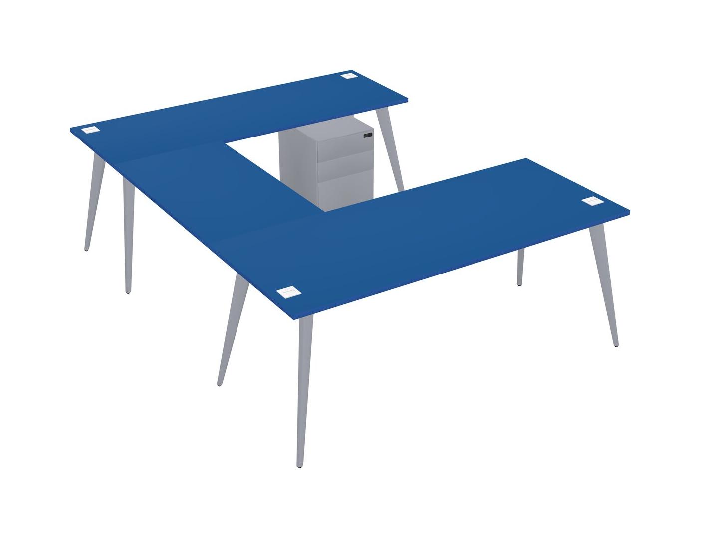 Prism Blue U-shaped Office Desk Plus Metal Mobile Drawers