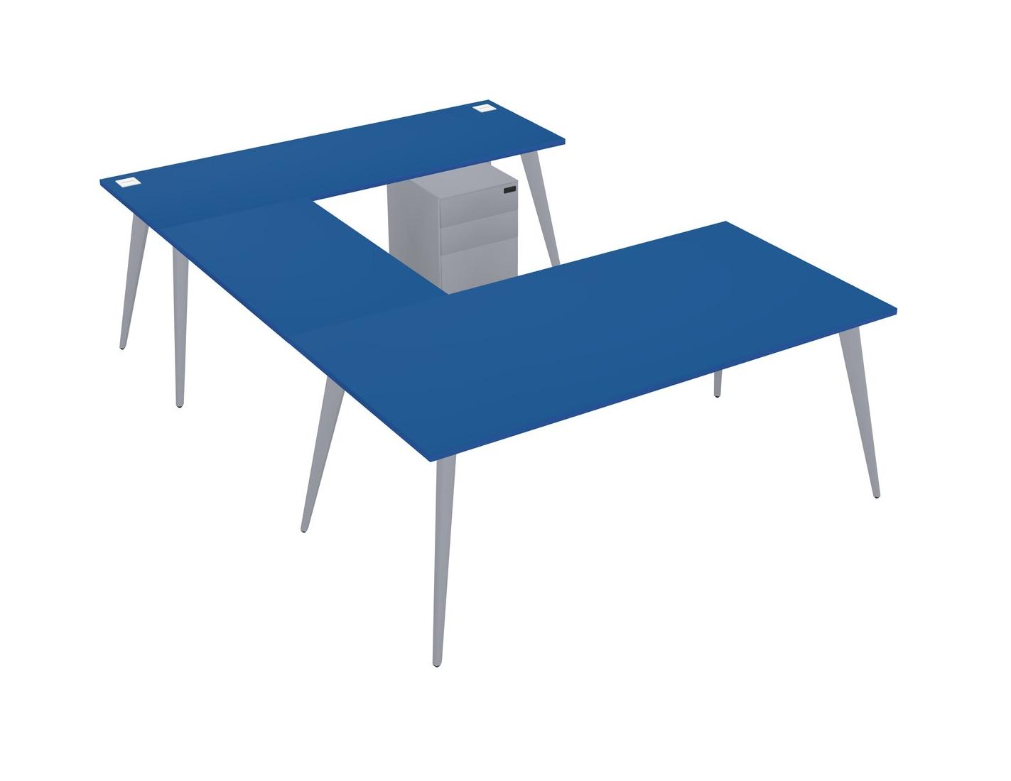 Prism Blue U-shaped Office Desk Plus Metal Mobile Drawers