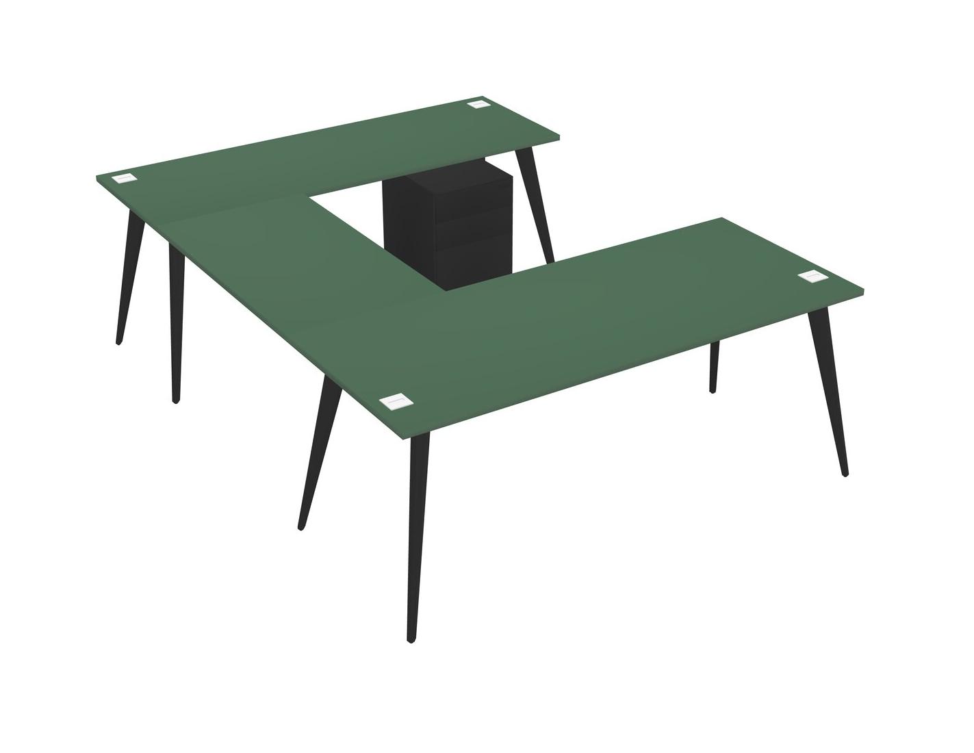 Green U-shaped Office Desk Plus Metal Mobile Drawers