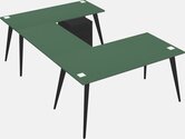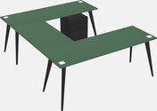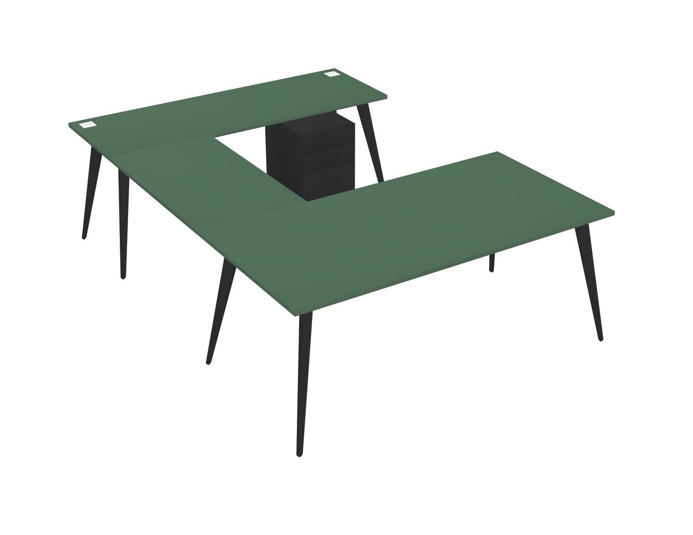Green U-shaped Office Desk Plus Metal Mobile Drawers