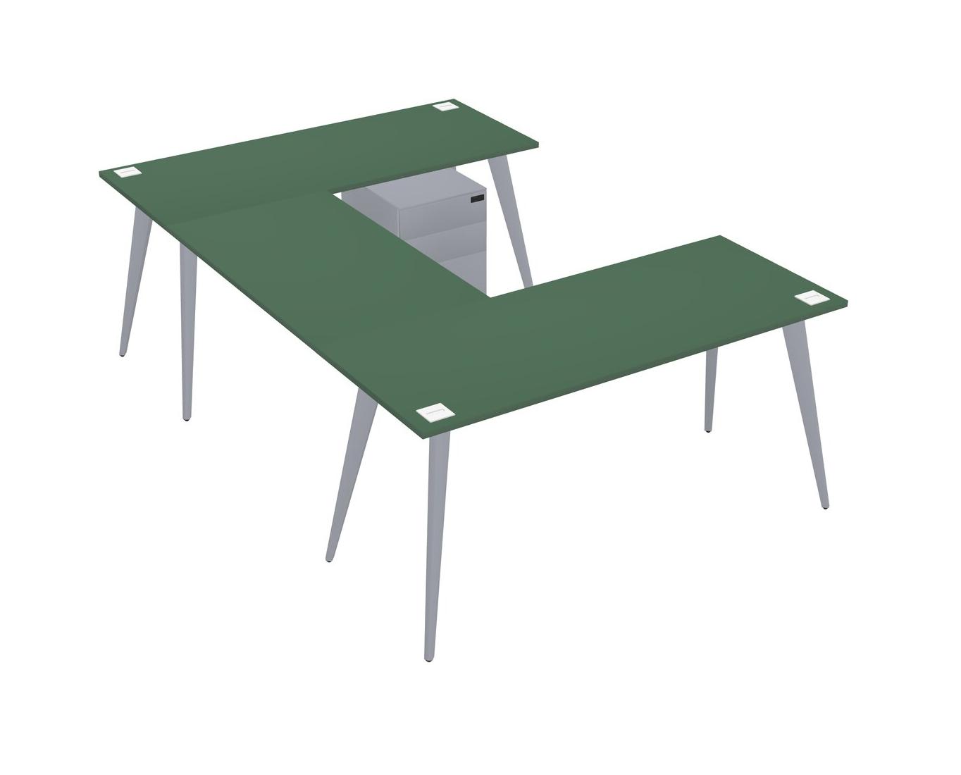 Green U-shaped Office Desk Plus Metal Mobile Drawers