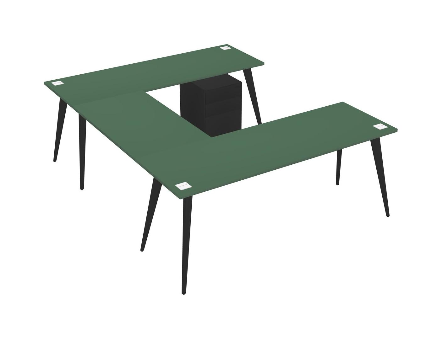 Green U-shaped Office Desk Plus Metal Mobile Drawers