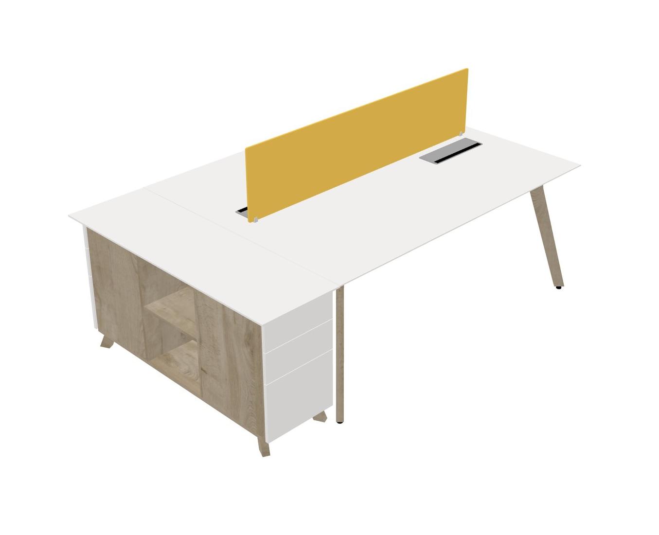 White Modern Rectangular Shared Office Desk + Storage Cabinet
