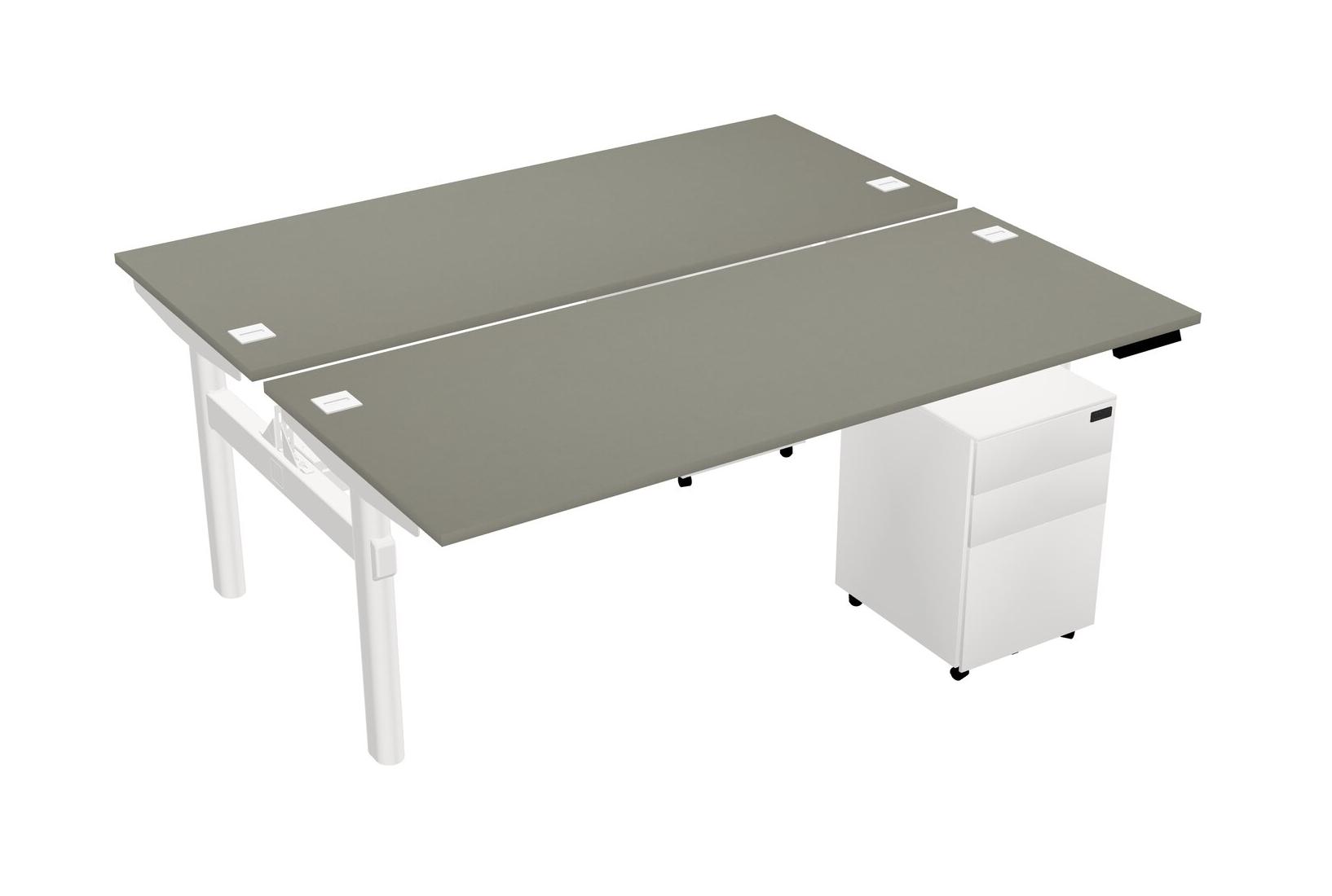 Grey Shadows Shared Dual Motor Electric Height Adjustable Desk With Metal Mobile Drawers