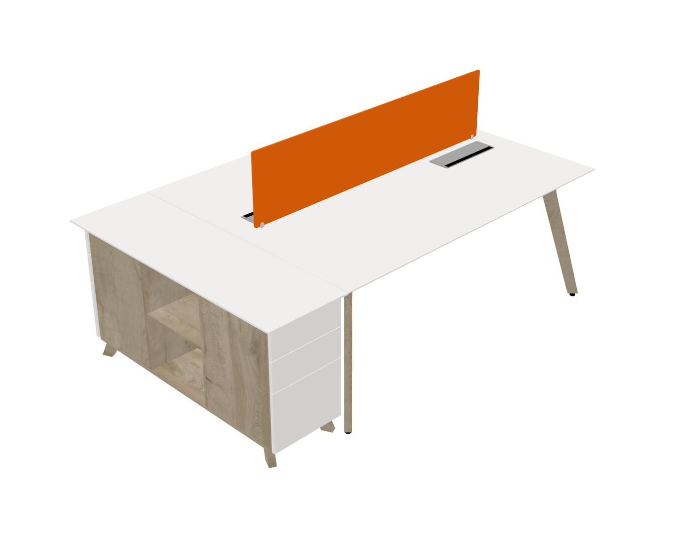 White Modern Rectangular Shared Office Desk + Storage Cabinet