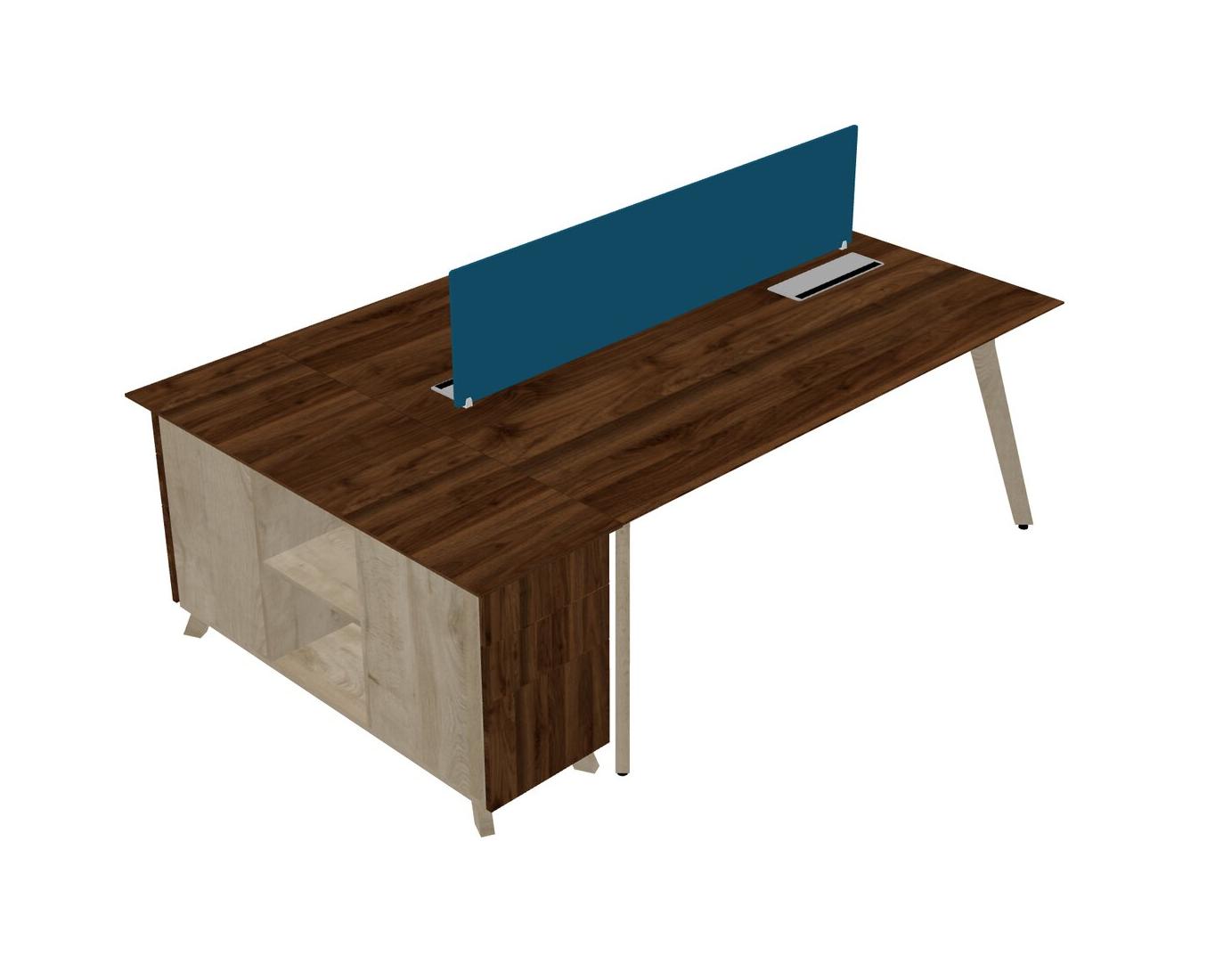 Columbia Walnut Modern Rectangular Shared Office Desk + Storage Cabinet