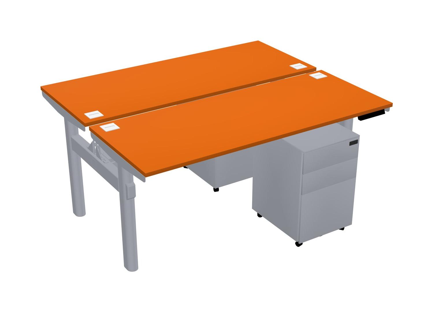 Orange Shared Dual Motor Electric Height Adjustable Desk With Metal Mobile Drawers