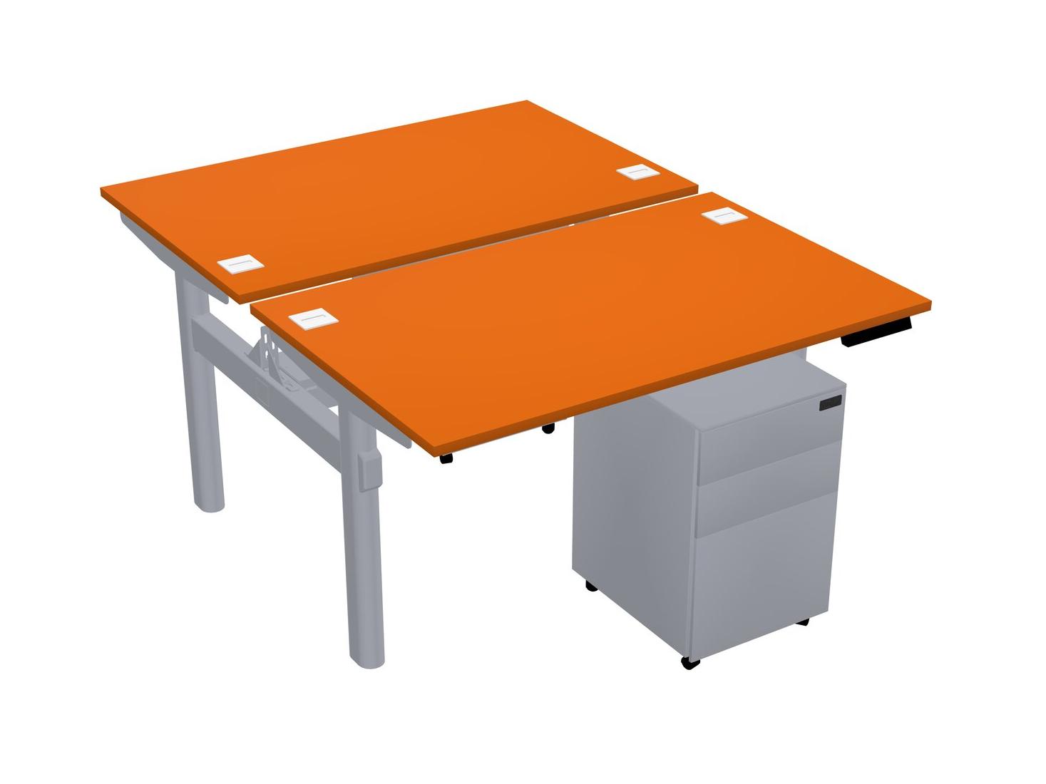 Orange Shared Dual Motor Electric Height Adjustable Desk With Metal Mobile Drawers