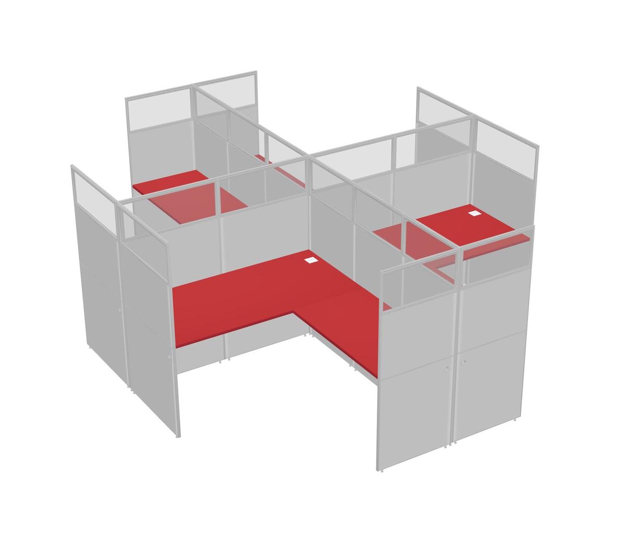Prism Red L-shaped Quad Office Cubicles