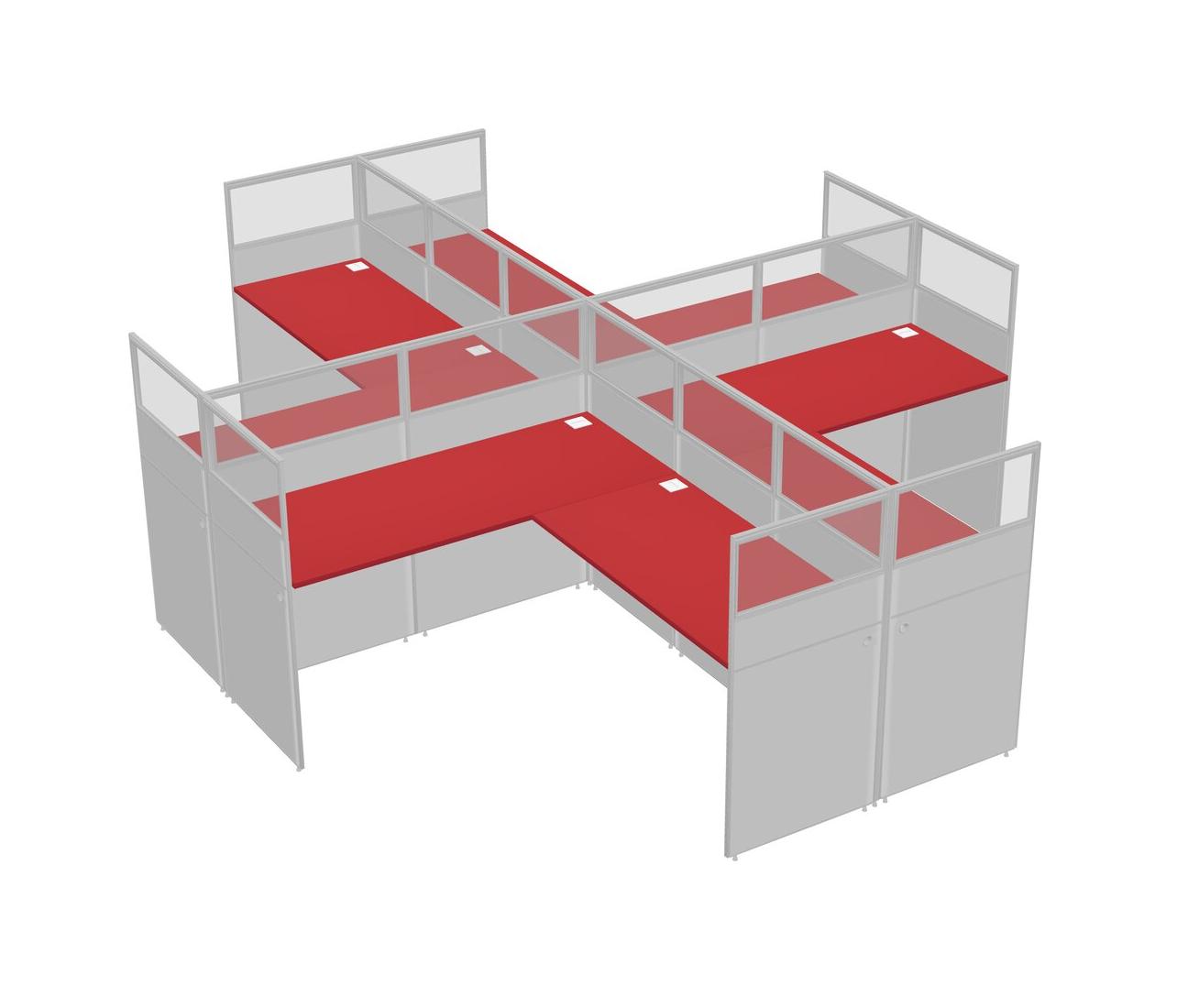 Prism Red L-shaped Quad Office Cubicles