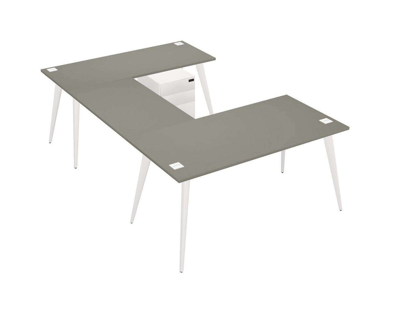 Grey Shadows U-shaped Office Desk Plus Metal Mobile Drawers