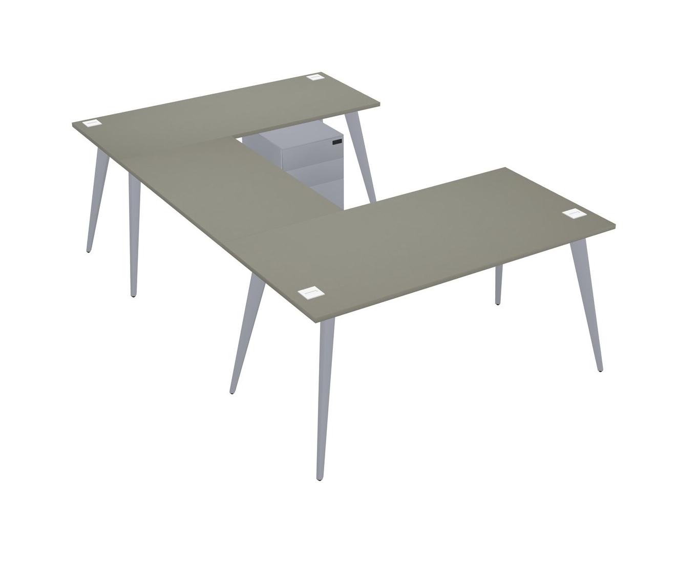 Grey Shadows U-shaped Office Desk Plus Metal Mobile Drawers
