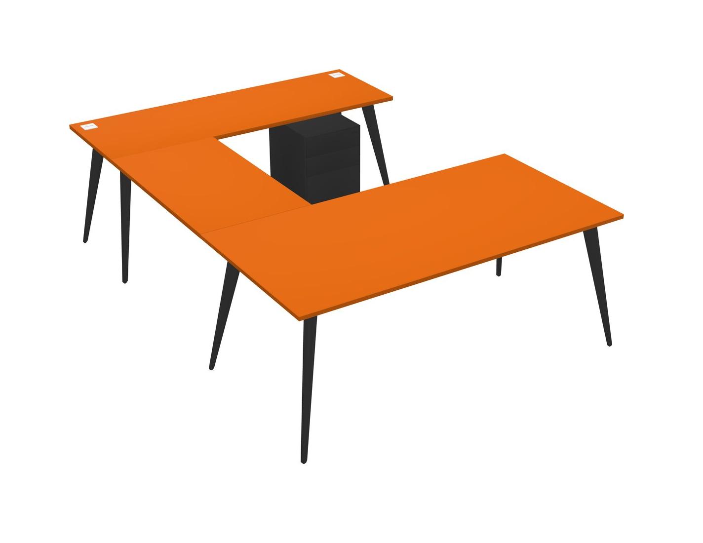 Orange U-shaped Office Desk Plus Metal Mobile Drawers