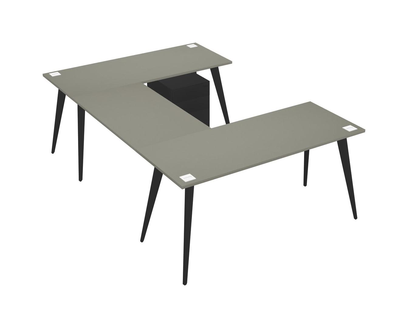 Grey Shadows U-shaped Office Desk Plus Metal Mobile Drawers