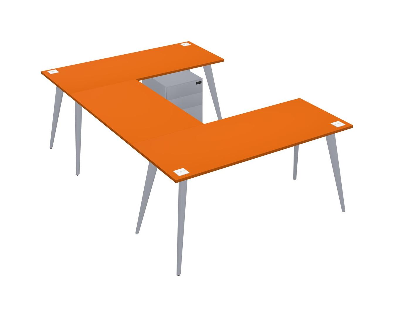 Orange U-shaped Office Desk Plus Metal Mobile Drawers
