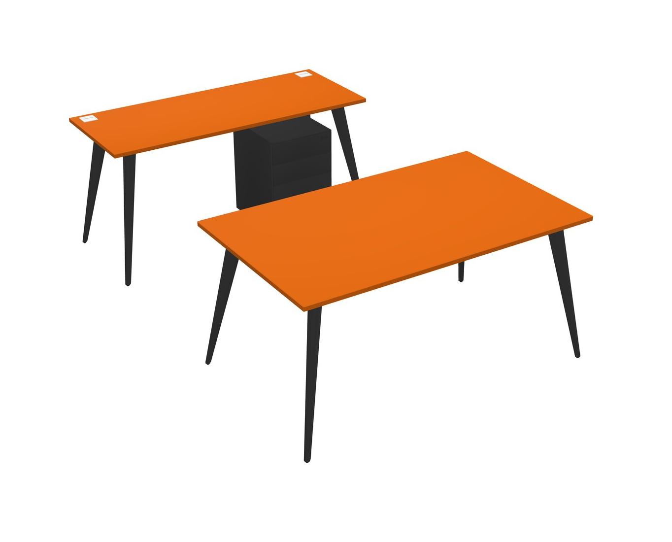 Orange Parallel Office Desk Plus Metal Mobile Drawers