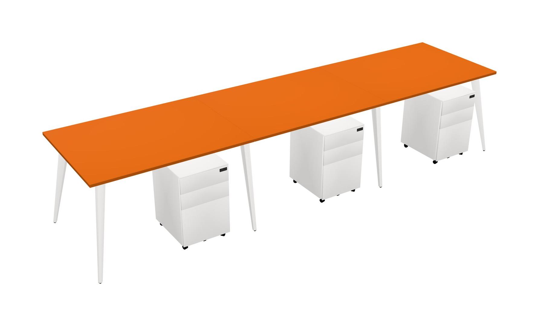 Orange Rectangular Office Desk With Metal Mobile Drawers