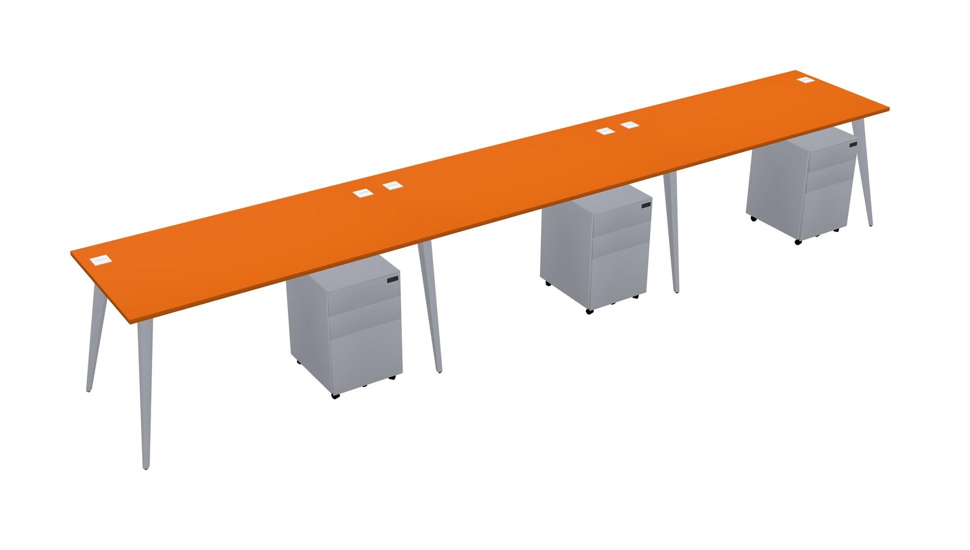 Orange Rectangular Office Desk With Metal Mobile Drawers
