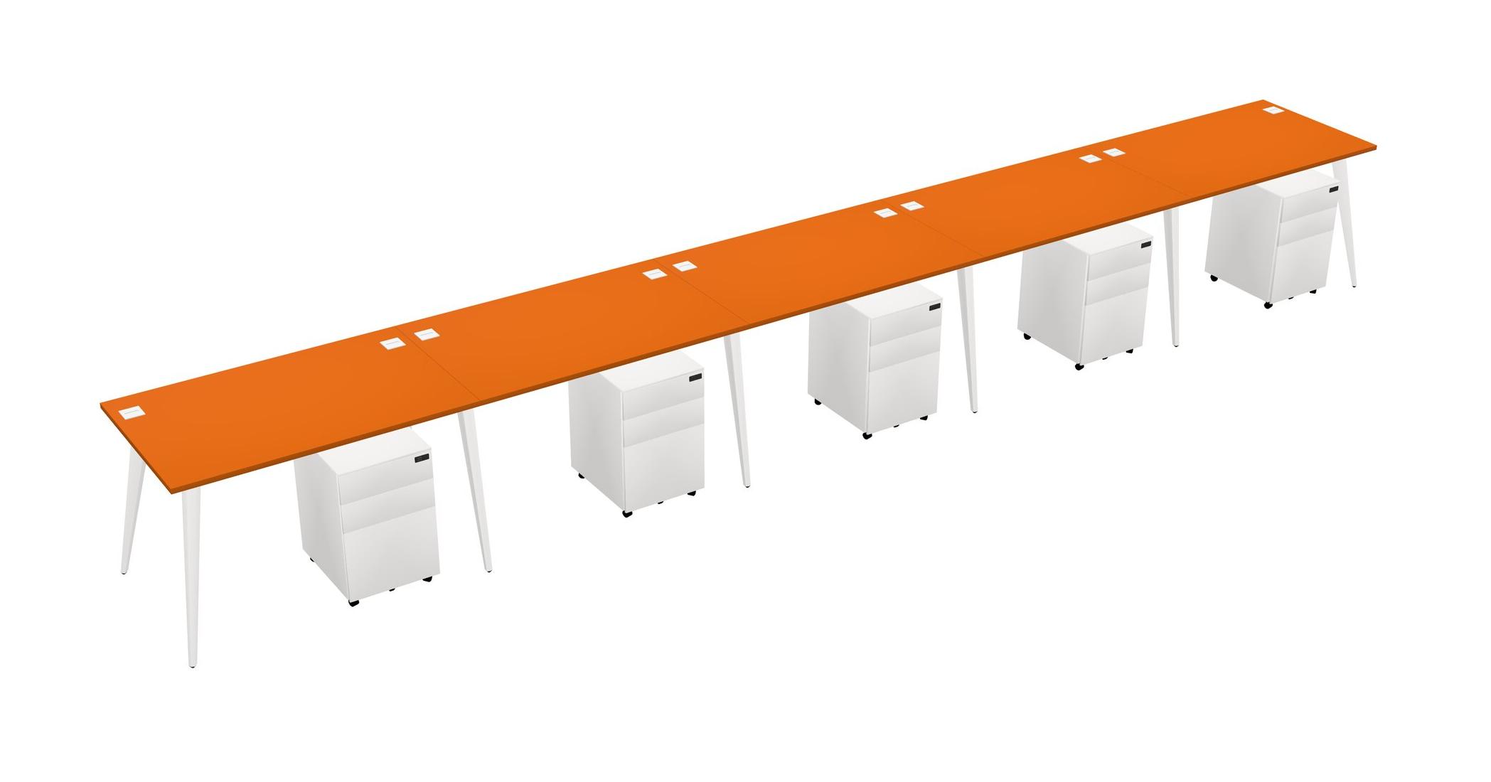 Orange Rectangular Office Desk With Metal Mobile Drawers
