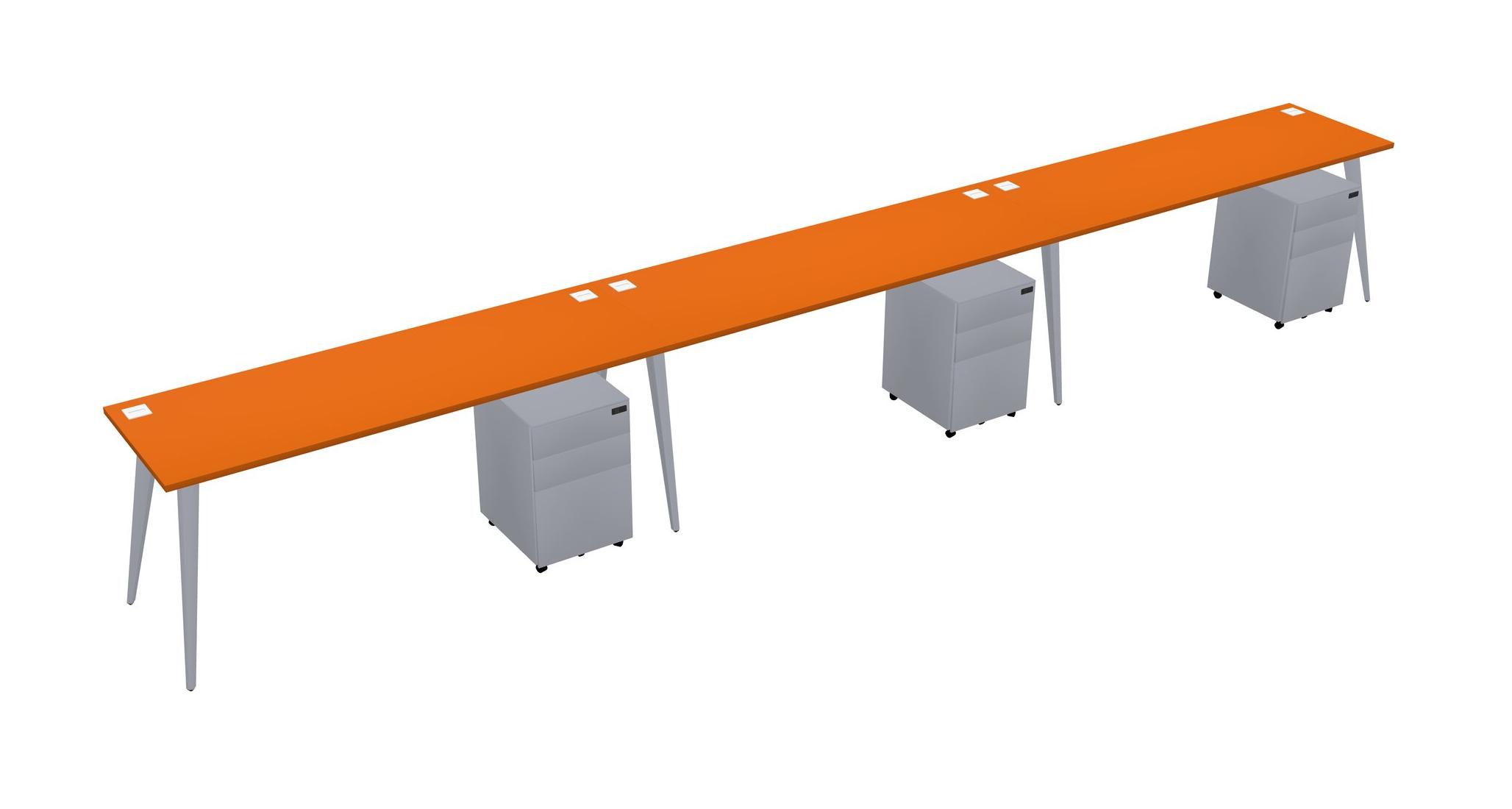 Orange Rectangular Office Desk With Metal Mobile Drawers