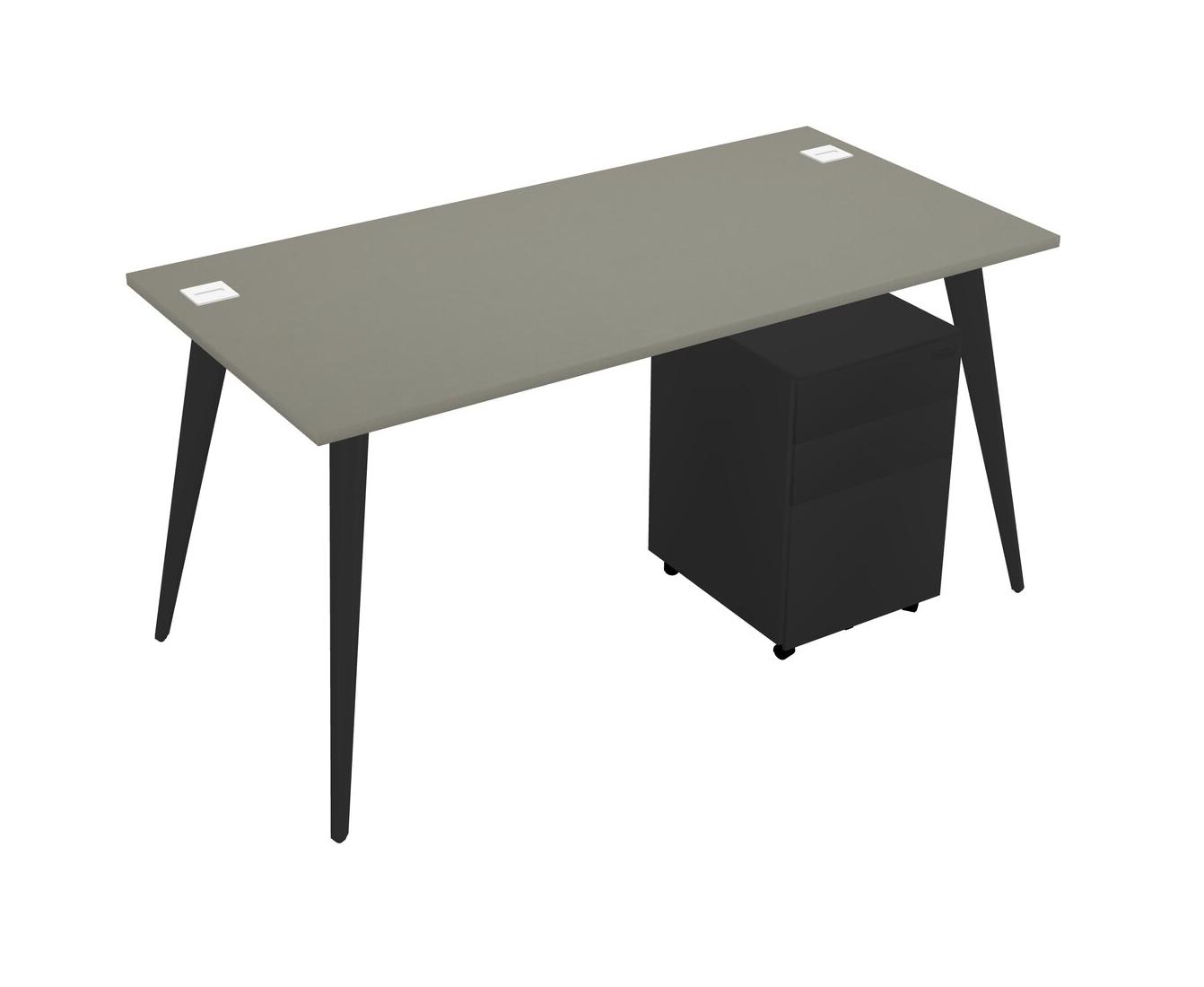 Grey Shadows Rectangular Office Desk With Metal Mobile Drawers