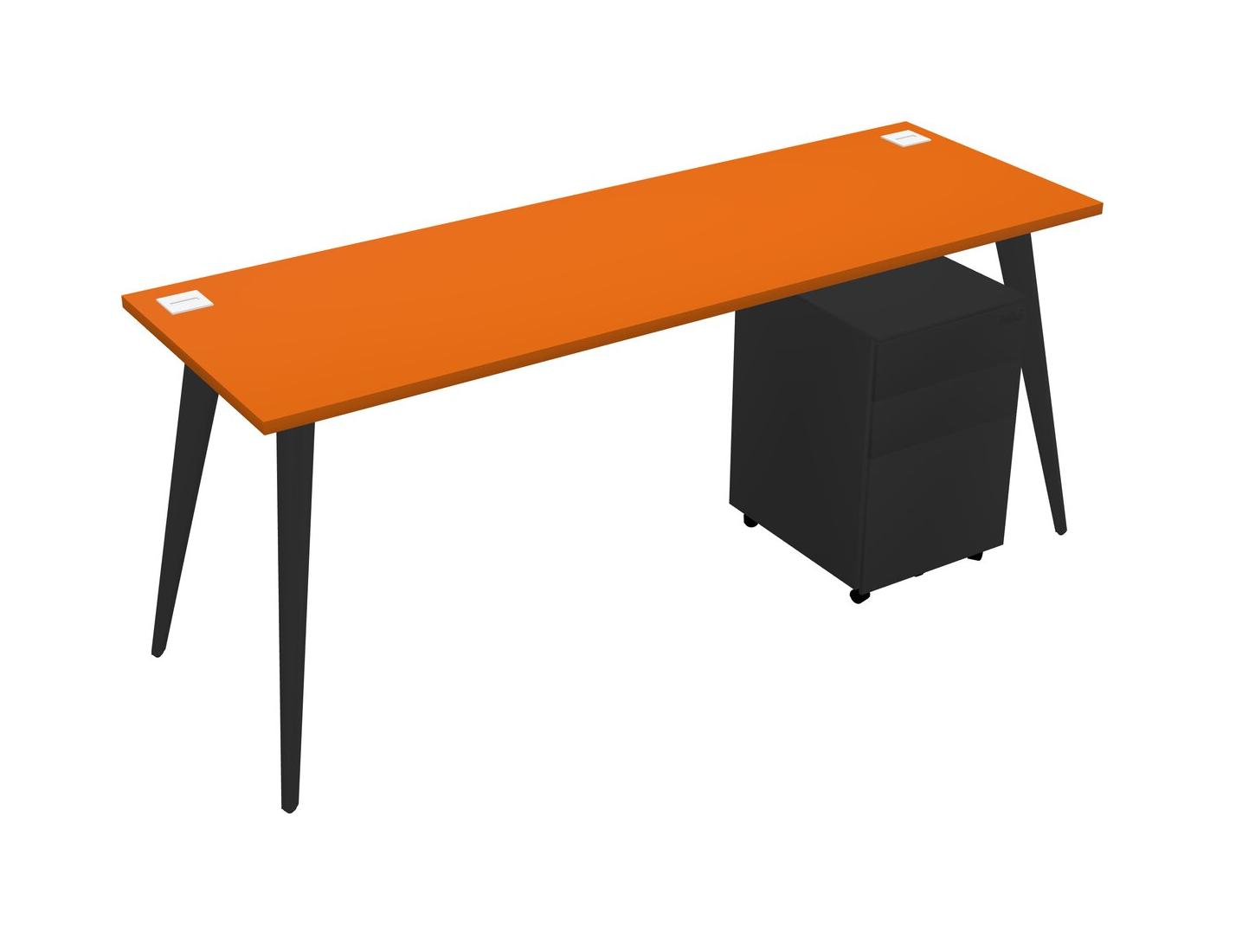Orange Rectangular Office Desk With Metal Mobile Drawers