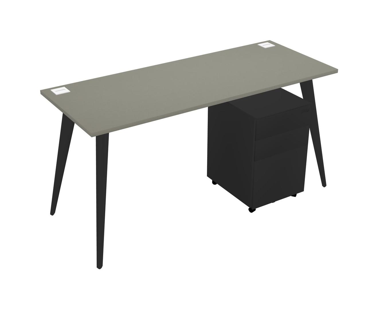Grey Shadows Rectangular Office Desk With Metal Mobile Drawers