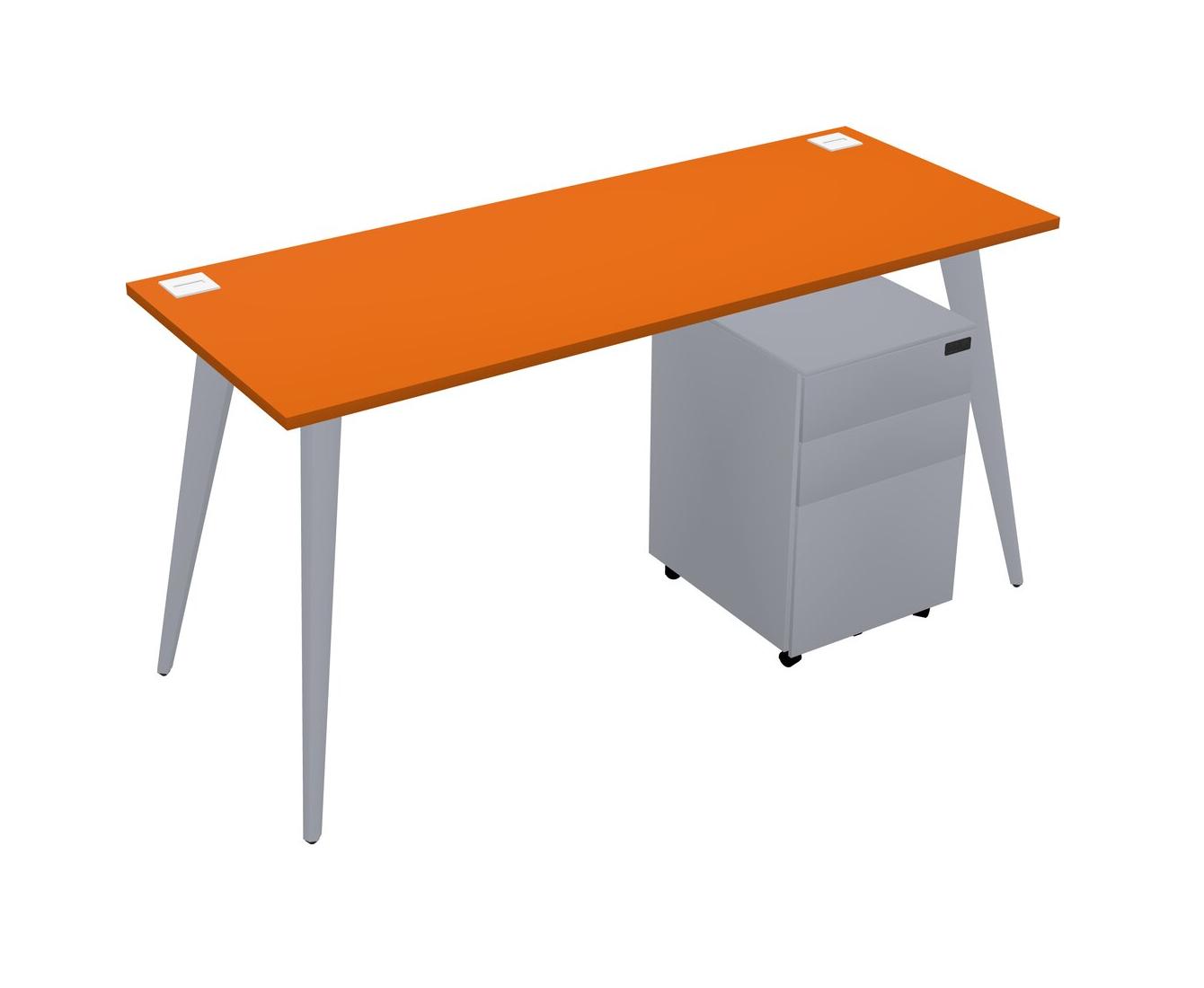 Orange Rectangular Office Desk With Metal Mobile Drawers