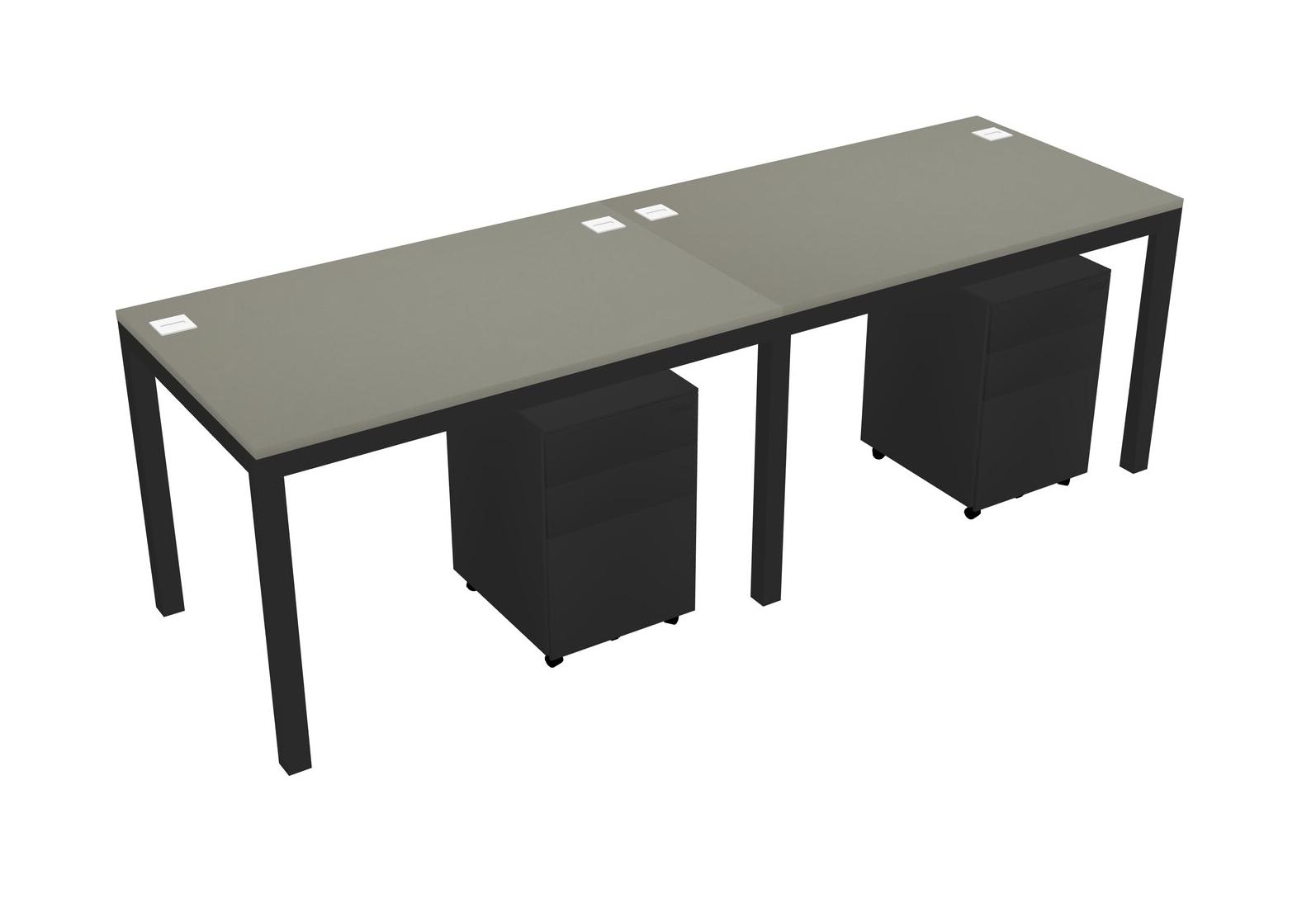 Grey Shadows Rectangular Office Desk With Metal Mobile Drawers For 2 Persons
